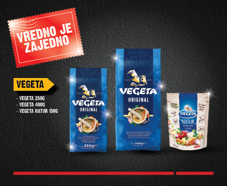 Ponekad je kašičica samo jednog začina dovoljna da probudi sva vaša čula ukusa. Vegeta, jedinstveni i originalni dodatak jelima, decenijama unazad nezaobilazni je začin u kuhinji. Neponovljiva Vegeta kombinacija je nekoliko vrsta začina i šest vrsta sušenog povrća (šargarepa, paškanat, krompir, luk, celer, list peršuna) koji svako slano jelo učini obrokom vrednim pomena. O uživanju u posebnosti ukusa, da ne pričamo. U kesici Vegeta Natur mešavine začina nalazi se samo usitnjeno sveže povrće, zdrava kurkuma koja začinu daje prepoznatljivu žutu boju, prirodna morska so sa ostrva Pag, predivna biljka selen koja daje upečatljiv miris po kojem već dugu niz godina prepoznajemo najkvalitetniju začinsku mešavinu...