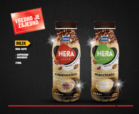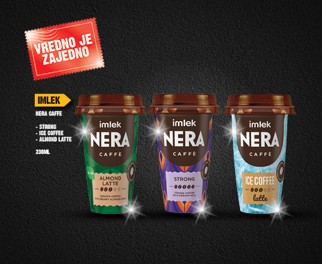 Nera Caffe je brend kafe u čaši namenjen svima koji žele praktičan i ukusan napitak u svakom delu dana. U ponudi su tri pažljivo osmišljena ukusa – Almond Latte, Ice Coffee i Strong Coffee – koji odgovaraju različitim potrebama i raspoloženjima. Almond Latte je biljna, posna kafa sa blagim i kremastim ukusom badema, Ice Coffee donosi osvežavajući ledeni užitak idealan za tople trenutke, dok Strong Coffee pruža intenzivniji, jači kafe-doživljaj za dodatnu energiju. Spremna za konzumaciju i laka za poneti, Nera Caffe je idealan izbor za pauzu na poslu, u pokretu ili kada želite brz kafe-trenutak bez kompromisa u ukusu. Atraktivno pakovanje dodatno ističe moderan karakter brenda i čini ga prirodnim izborom za svakodnevno uživanje. Kao deo Imlek portfolija, Nera Caffe predstavlja spoj kvaliteta, praktičnosti i savremenih potreba potrošača u kategoriji kafe u čaši.